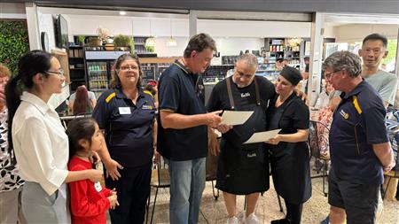 The Club held its first Social Breakfast for 2025 at Cafe Sa Bu Cox's Rd Mall. It was also a great opportunity to present some of our supporters of the 2024 Tree of Joy with Thank you Certificates and Gro- trees