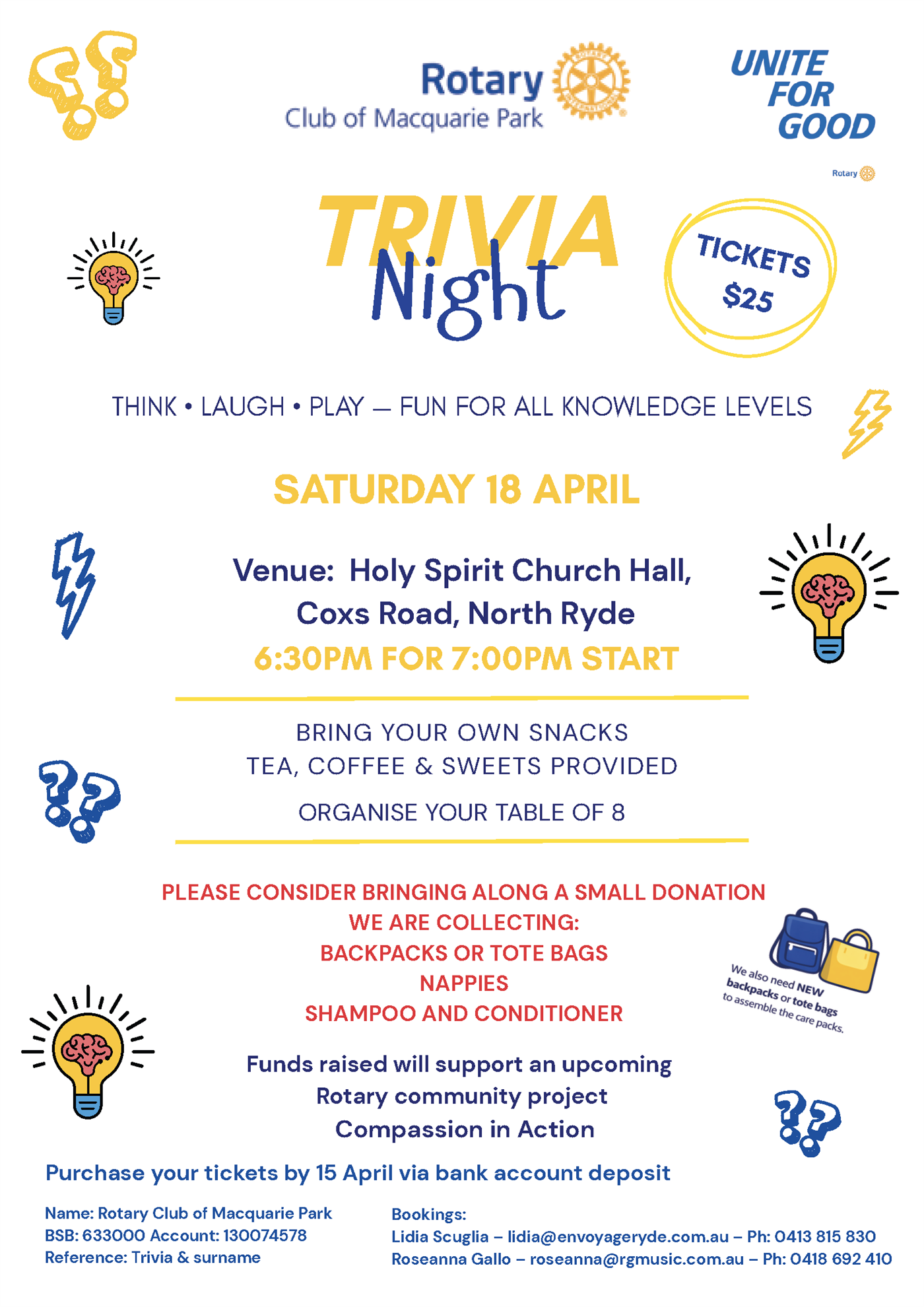 A reminder that our Trivia Night will be held on 7 March—we hope to see many of you there!
