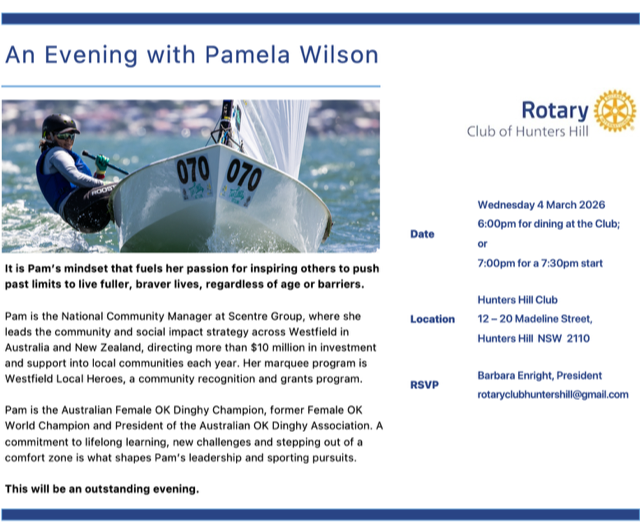 Our next meeting will be face to face Assembly at Dunmore Lang College Macquarie University on Friday 20th February 2026 7:15am for 7:30am start. We will induct our new member, Max Ponza and will have as guest speaker Rana Ensor, Acting CEO of KidsXpress. The meeting will also be accessible on Zoom if you cannot attend in person.